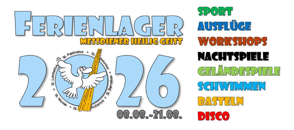 Das Ferienlager ist für Messdiener und Kinder aus der Gemeinde Heilig Geist und Umgebung und richtet sich an Mädchen und Jungen im Alter von 9-15 Jahren (zu Beginn des Ferienlagers).